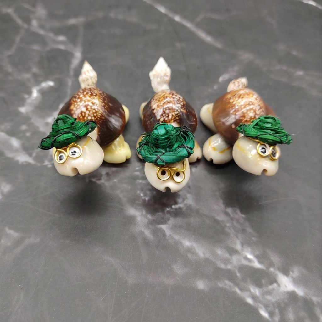 Și-mi întinde omu’ mâna: o broscuță micuță făcută din scoici, luată de pe la vreo tarabă de pe faleză.